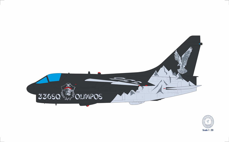 The A‑7E Corsair II, in its commemorative “Olympus” livery, captured with historical precision and emotional depth. A collector’s poster celebrating aviation history and design excellence.